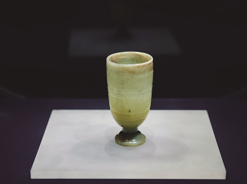 在月光或者烛光下,光线穿过薄薄的杯壁,穿透红色的葡萄酒,再透过薄薄的杯壁进入人眼,看起来就像酒杯自身在发光一样,熠熠生辉。实际上,这是光线和酒杯共同营造出来的美丽幻象。夜光是由玉石本身产生的,还是由外部光线产生的,只需要撤去外部光线,即可判断。