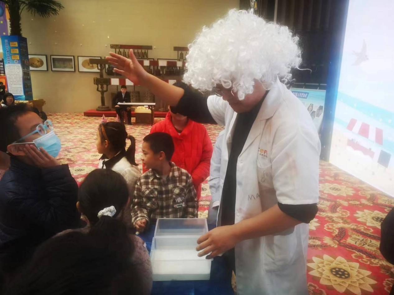 现场进行科学实验表演,如消失的水、火焰掌等。